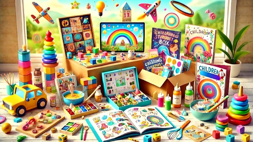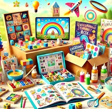 An art and craft box with lots of supplies and project ideas that keep them engaged and excited about expressing themselves through art. They have fun and learn at the same time.